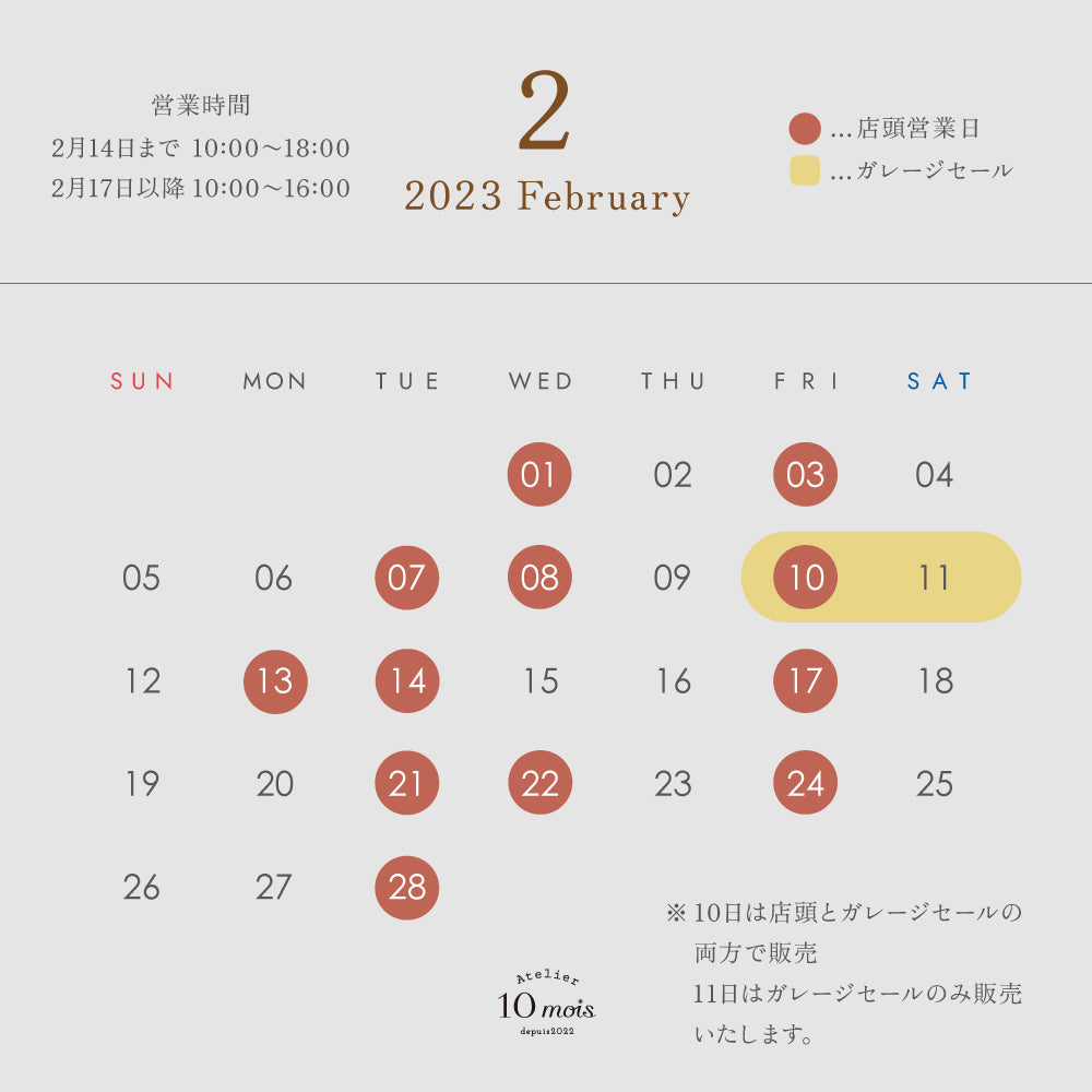 Atelier10mois本店 一部営業時間変更のお知らせ