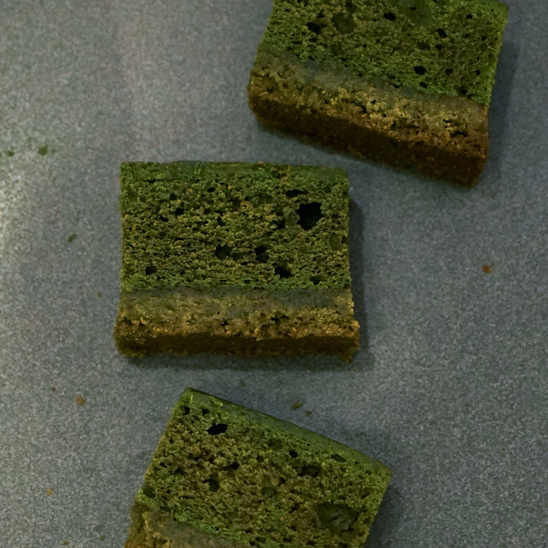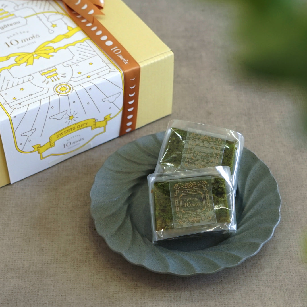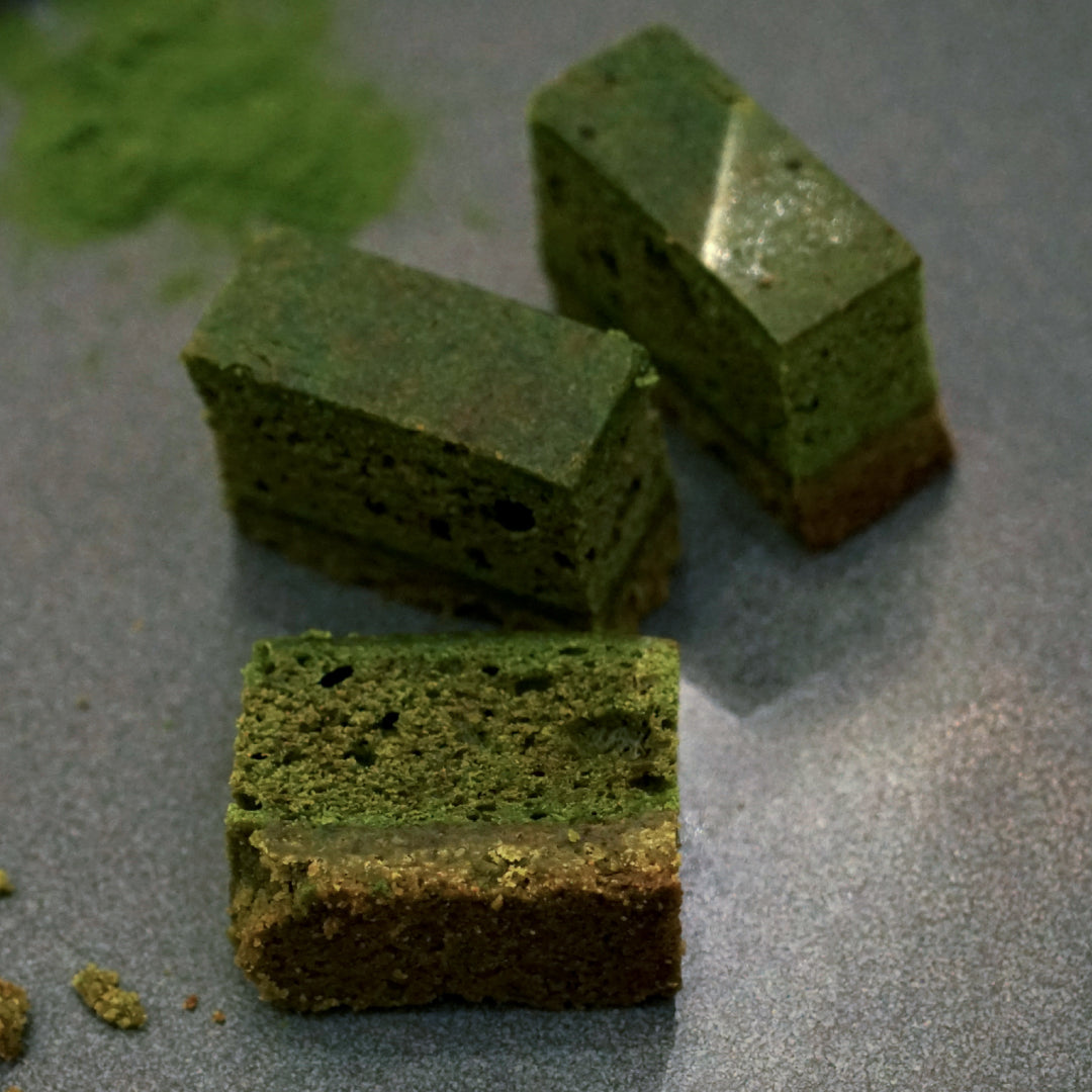 食べ応えのあるしっとりとしたパウンド生地にザクザクとしたクッキーを組み合わせた焼き菓子「キャトル」の抹茶味。