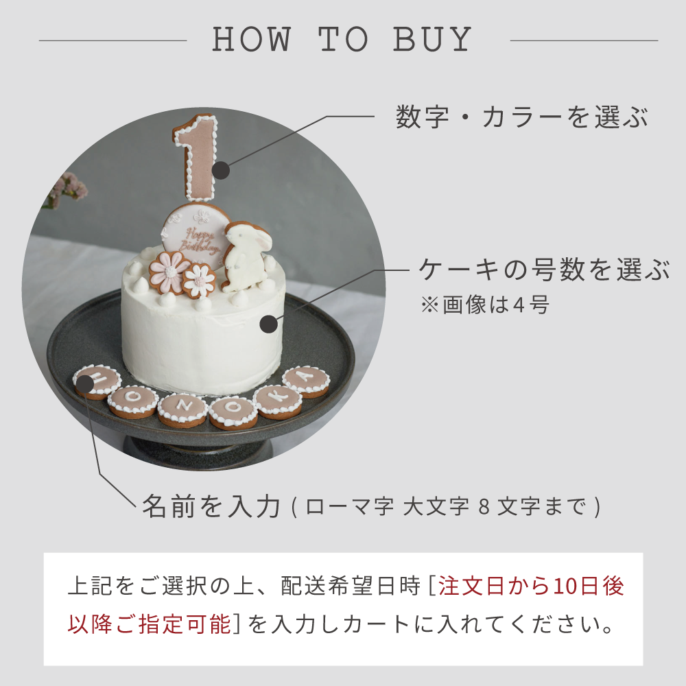 ケーキのサイズは、3号・4号からお選びいただけます。