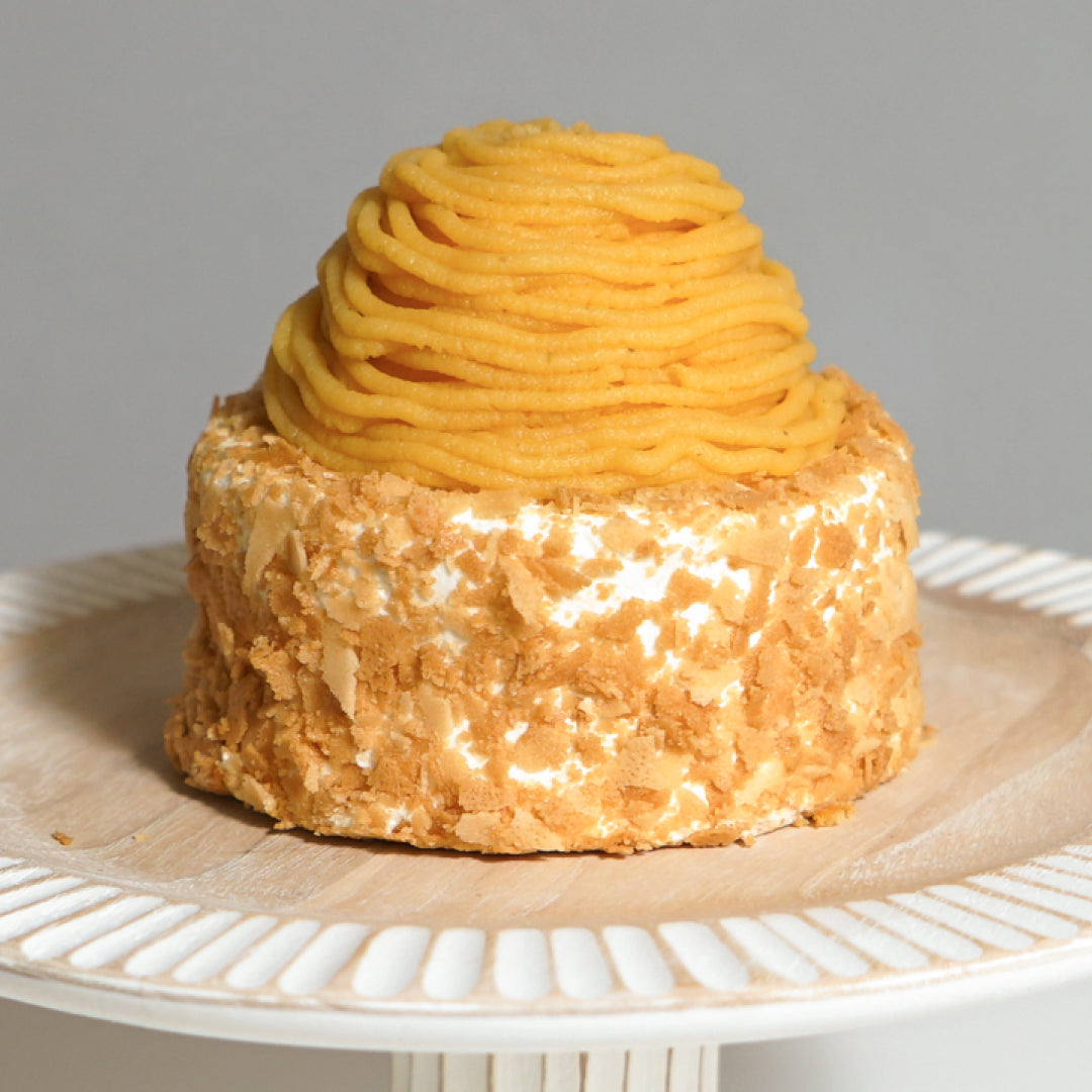 しっとりと焼き上げたスポンジに、砂糖を使わず丁寧に裏ごしした安納芋のペーストと、優しい甘さの豆乳クリームを合わせた、はじめてのハロウィンパーティーにぴったりなケーキです。